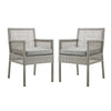 Modway Aura Wicker Rattan Outdoor Patio Two Dining Arm Chairs in Gray Gray