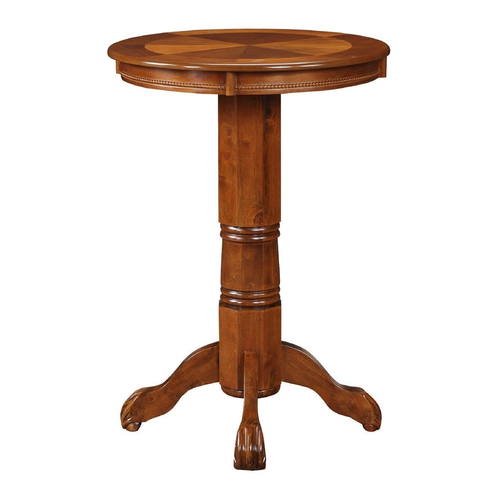 An elegant blend of fine craftsmanship and alluring details, this solid wood pub table from our Ava collection is perfect for a game room, bar or dining room. With a gorgeous sunburst table top and carved pedestal base with claw and ball foot design, this piece gives any space a feel of traditional elegance, giving them a bold, unique stage from which to draw the eye. Compatible with 29 inch height barstools, sold separately.