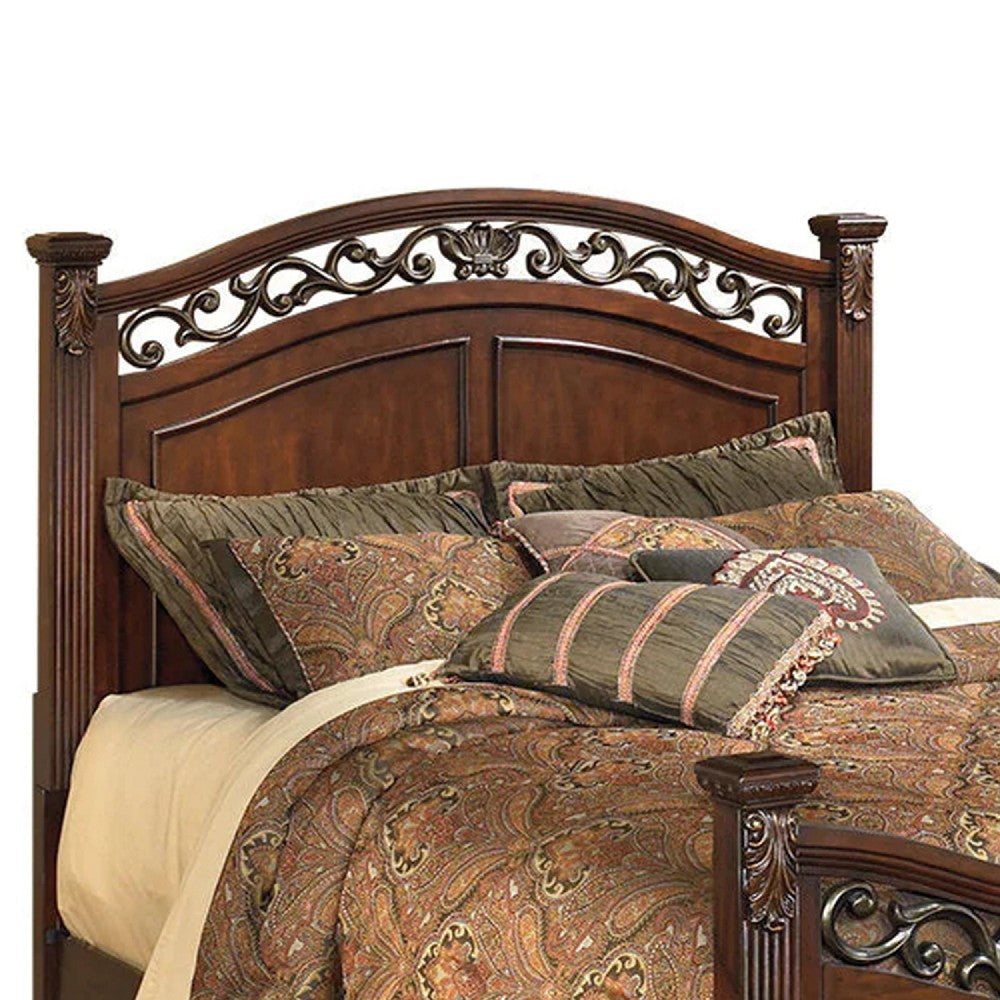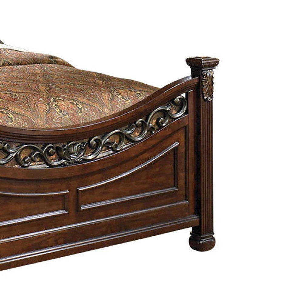 Aza Traditional Wood California King Bed, Leaf Carvings, Rich Cherry Brown By Casagear Home