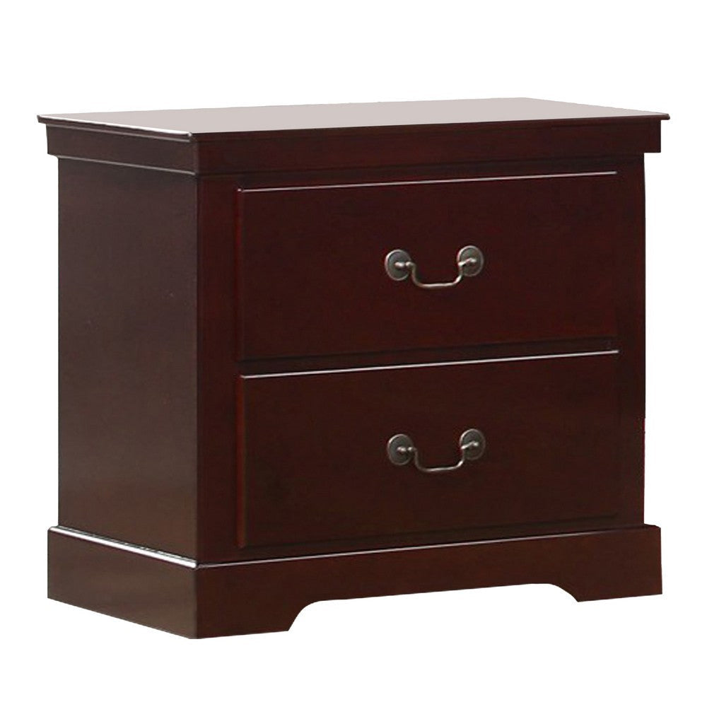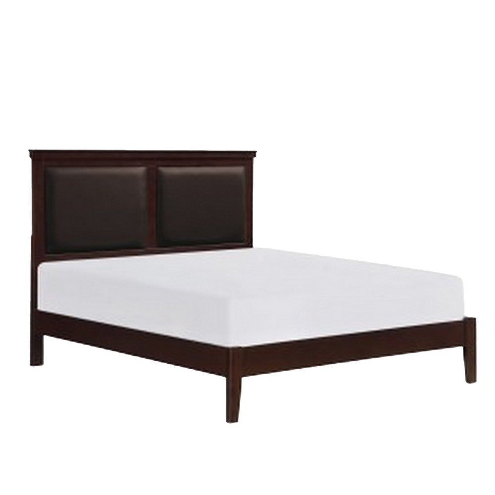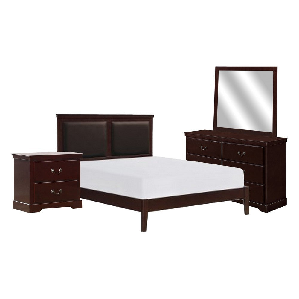 Balli 4 Piece Bedroom Set | Queen Size | Cherry Brown | Black Leather Panels