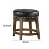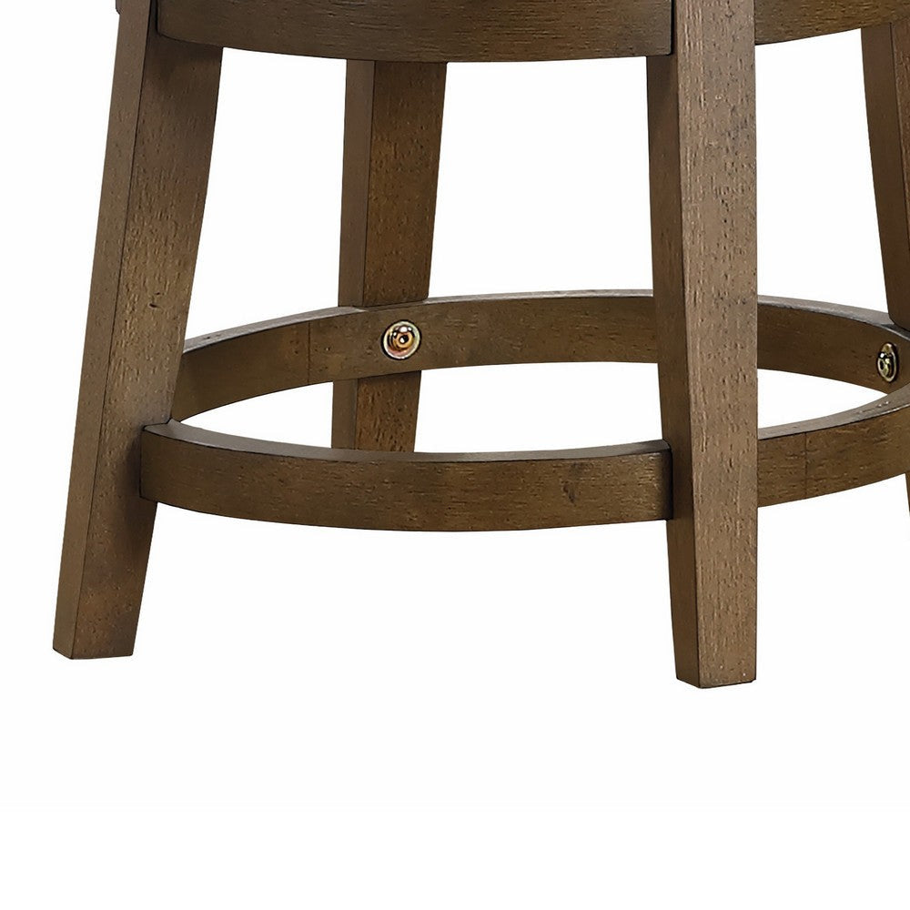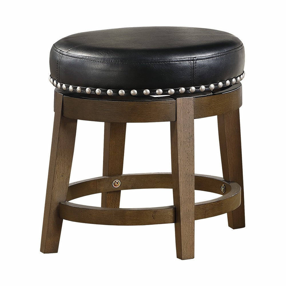 Modern comfort meets timeless style with this set of two swivel dining stools, featuring a plush round seat upholstered in luxurious black faux leather. Meanwhile, its sturdy brown wood base with a footrest offers stability and an effortless 360 degree swivel functionality, all adorned with nailhead trim to complete the transitional design. Check out our Bara collection for more color and size options.