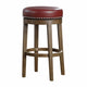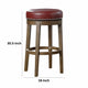 Bara 31 Inch Swivel Barstool, Red Round Faux Leather, Brown Wood, Set of 2 By Casagear Home