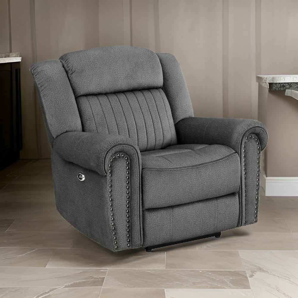 Ben 38 Inch Power Recliner Chair, Soft Cushions Gray Microfiber, Solid Wood By Casagear Home