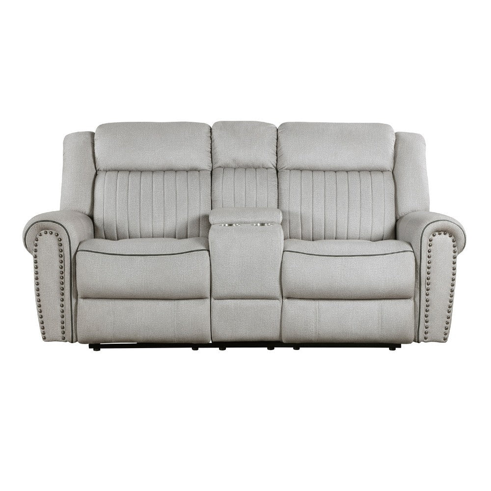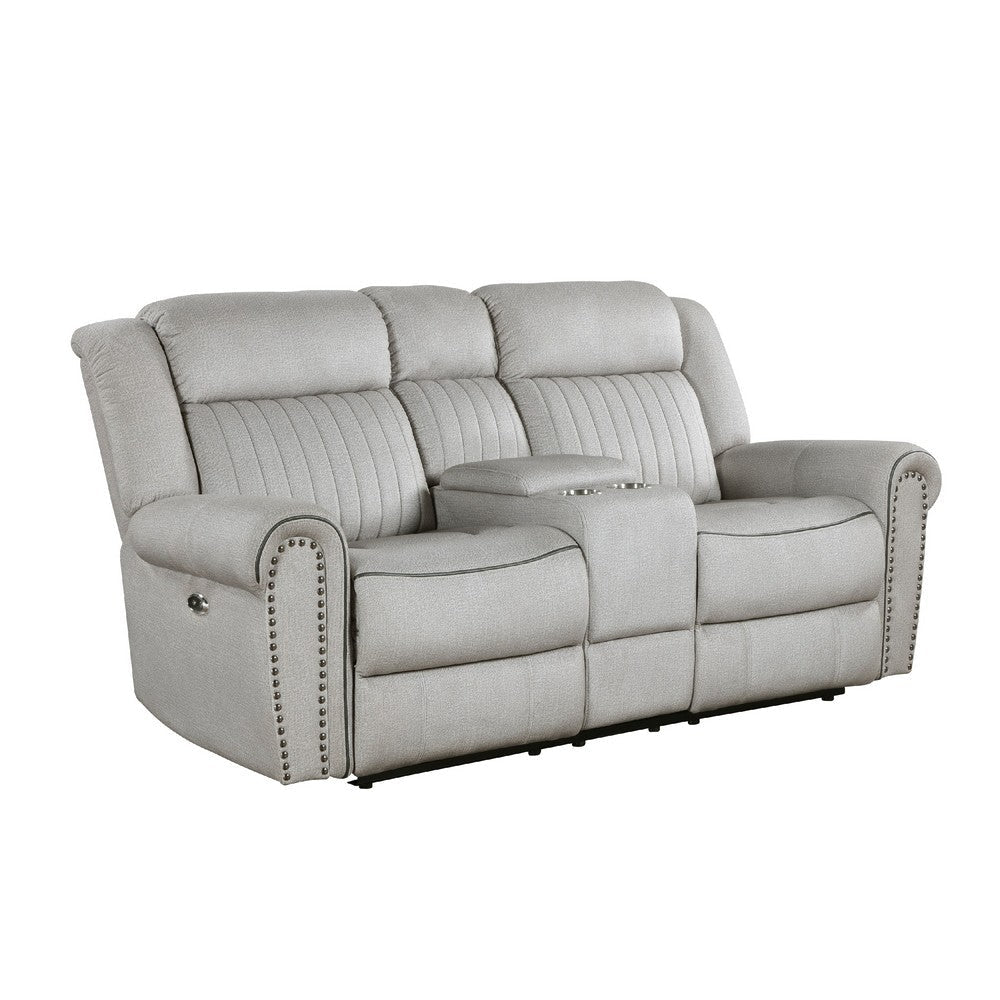 Ben Power Reclining Loveseat | 76" | Gray Microfiber | Nailhead Trims