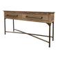 Bera 55 Inch Sofa Console Table, Cross Metal Base, 2 Drawers, Brown Wood By Casagear Home