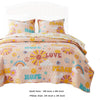 Add this unique and stylish print 2 Piece Twin Quilt set for a country look to your bedroom decor. This set includes a quilt and a pillow sham with rainbows, flowers, and floating clouds on a beige sky. It is reversible to a coordinating print for two looks and can stand alone on your bed or act as a perfect layering, adds a decorative element of texture to your bed.