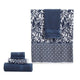 - Yarn dyed blue with jacquard trefoil filigree pattern