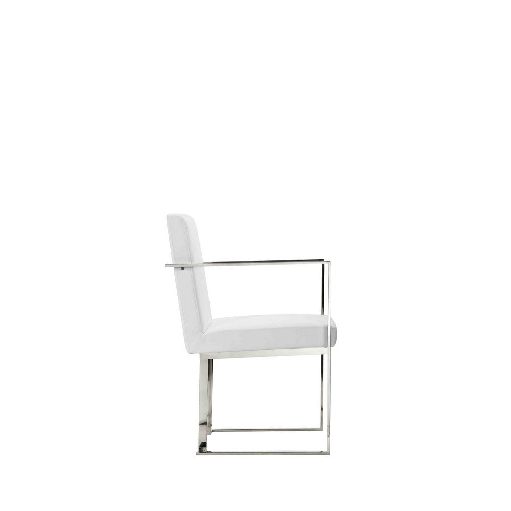 Boly 22 Inch Dining Armchair, Chrome Cantilever Steel, White Faux Leather By Casagear Home