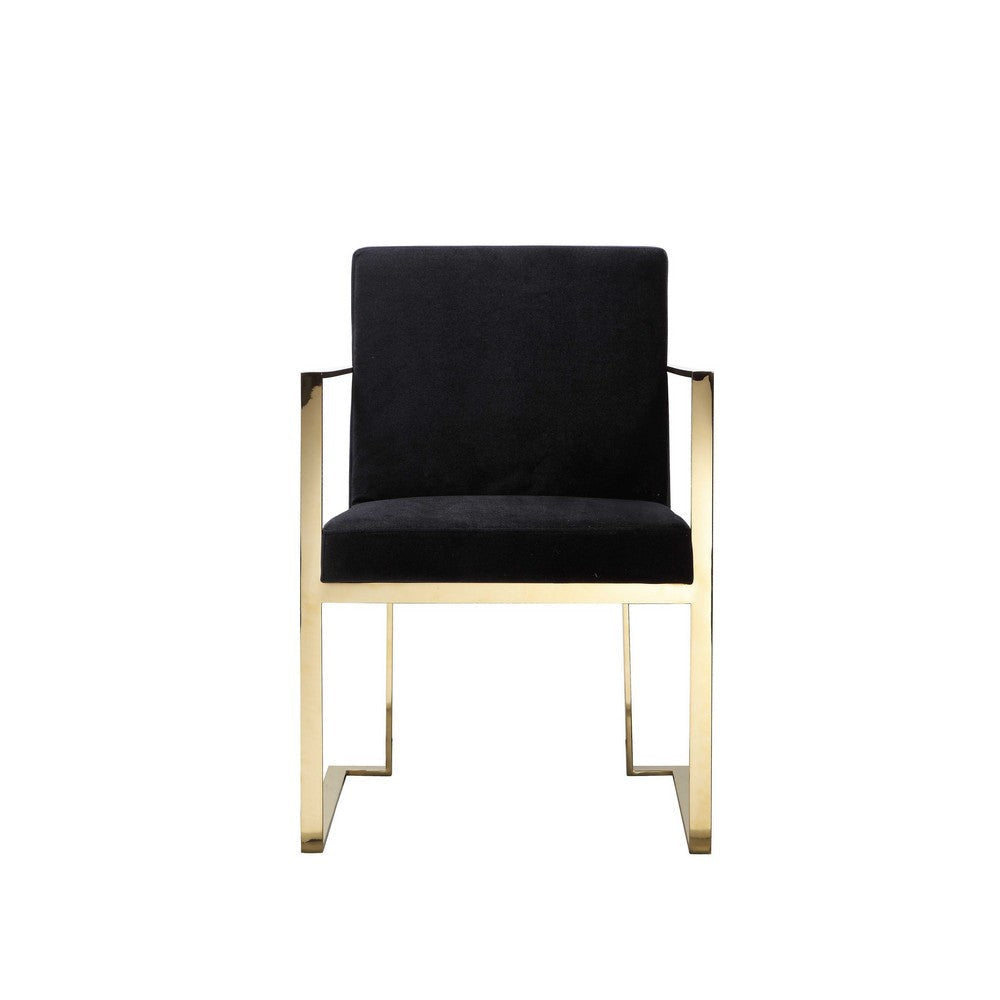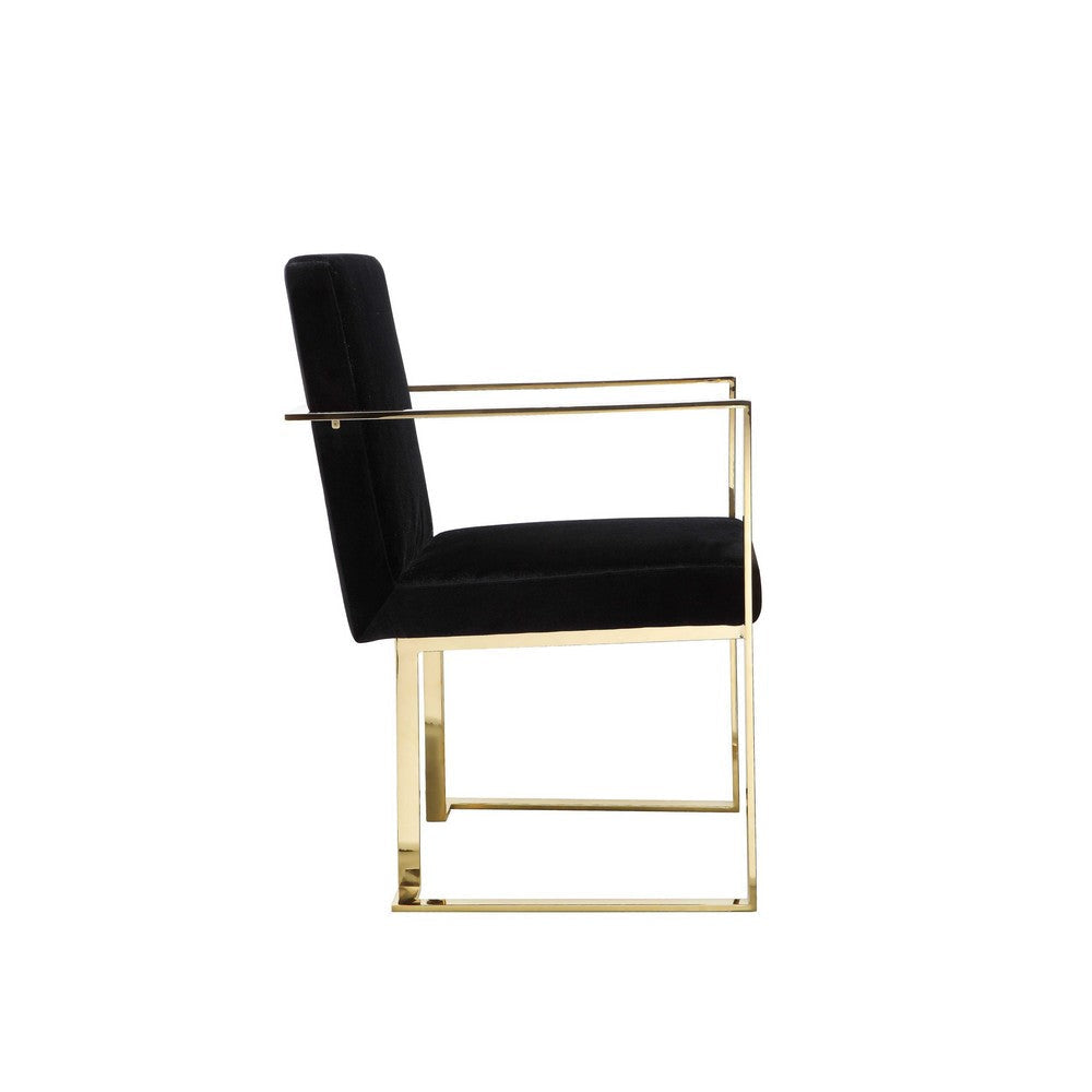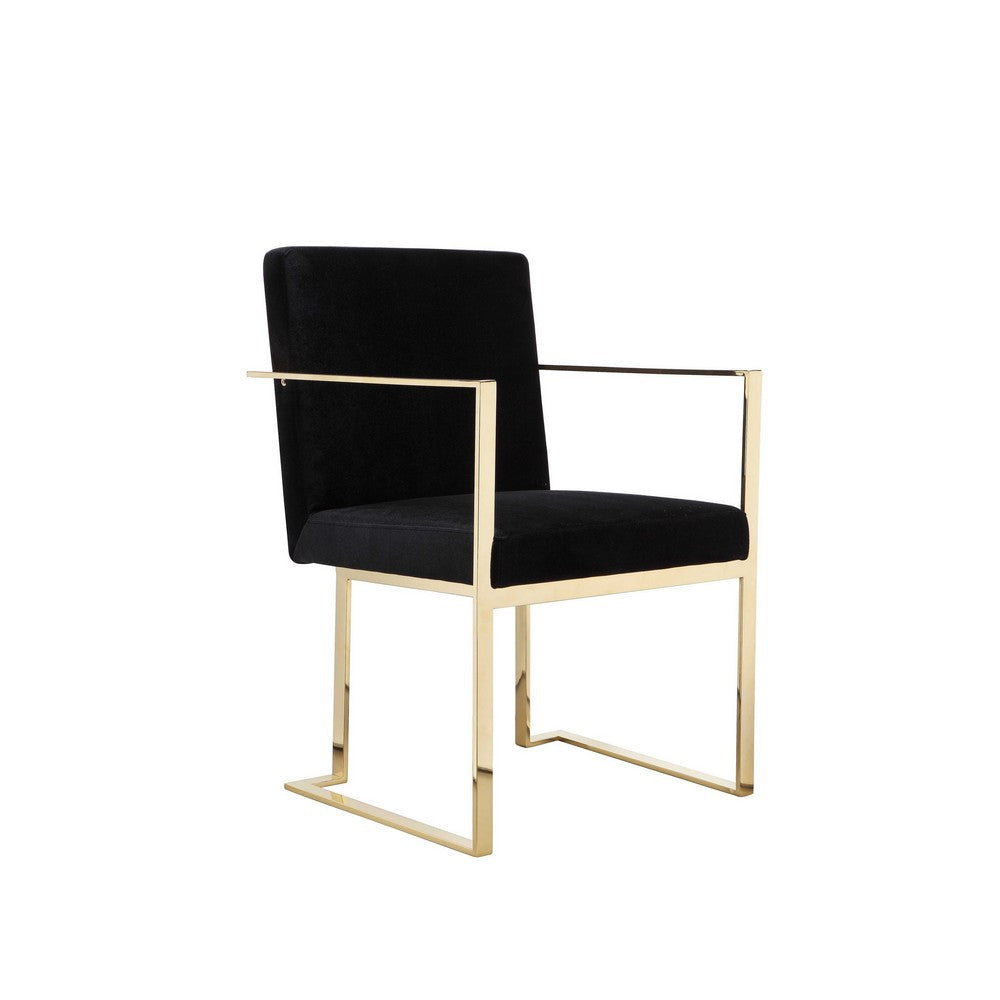 Boly 24 Inch Dining Armchair, Cushioned Black Velvet Seat, Gold Cantilever By Casagear Home