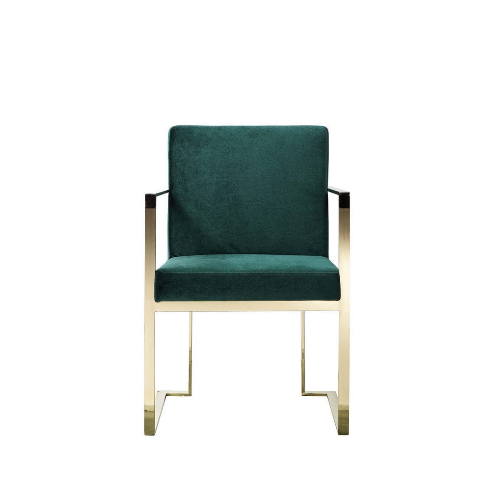 Boly 24 Inch Dining Armchair, Cushioned Green Velvet Seat, Gold Cantilever By Casagear Home