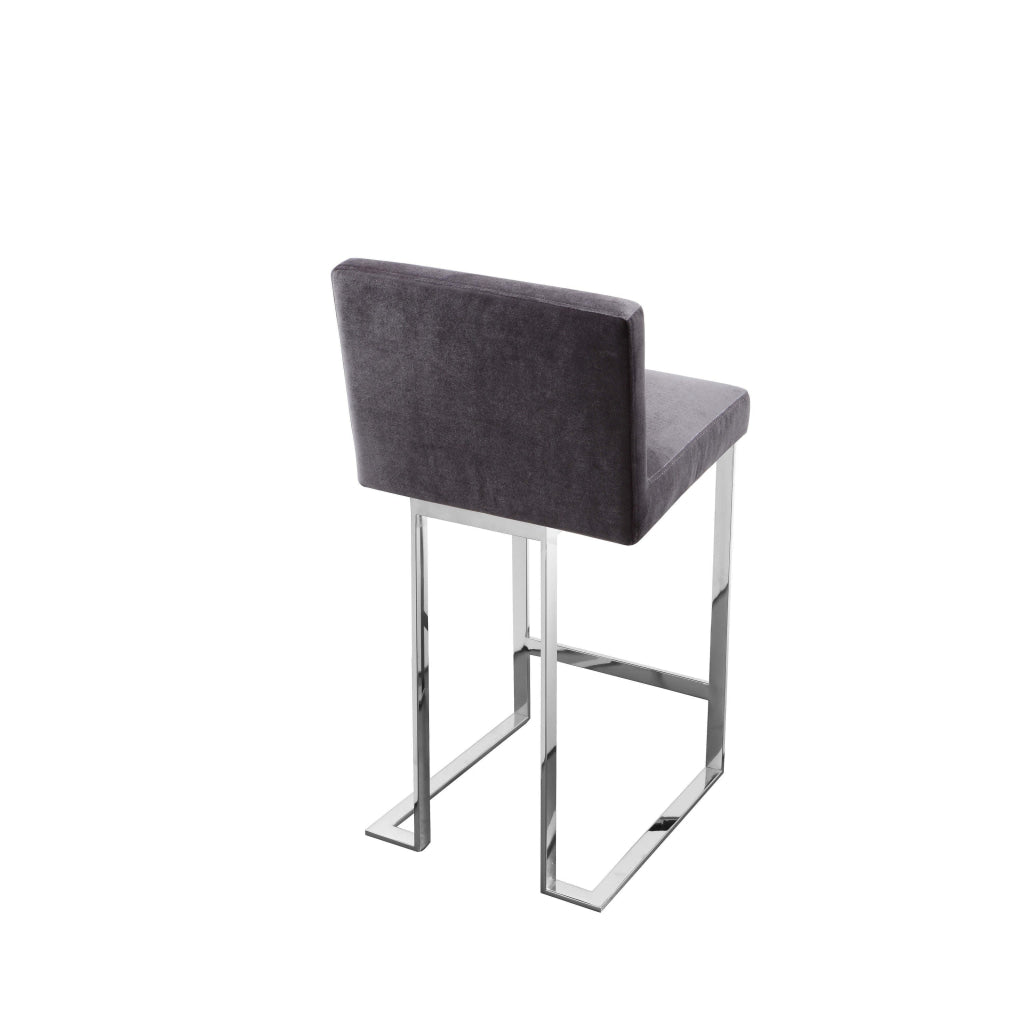 Level up any kitchen island or counter height table with this counter stool chair from our Boly collection. This modern gem features a polished chrome frame with rectangular legs, plush gray velvet upholstery, and a relaxing footrest, creating a stylish and comfortable seating experience for holiday gatherings or cozy evenings alike. Check out our Boly collection for more options.