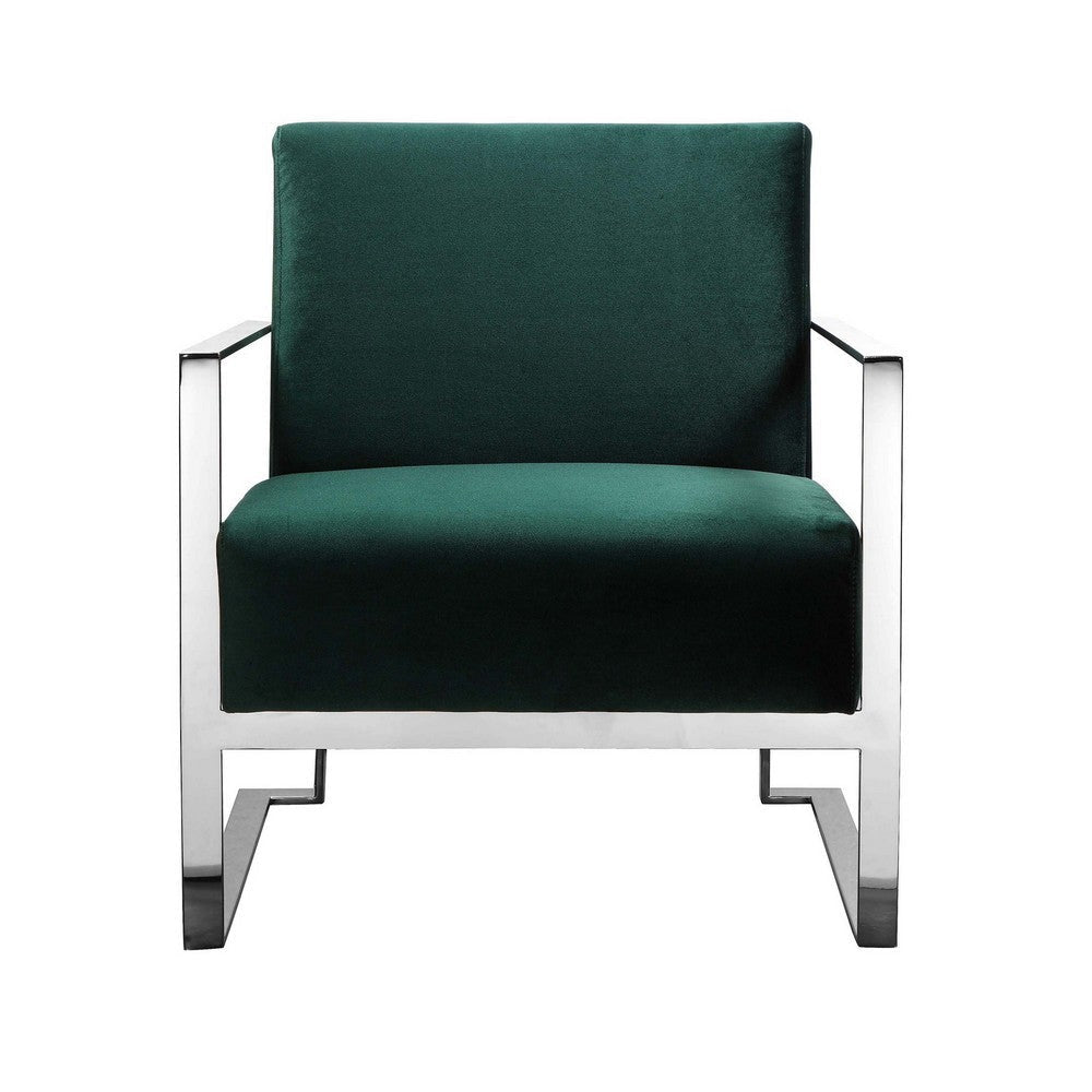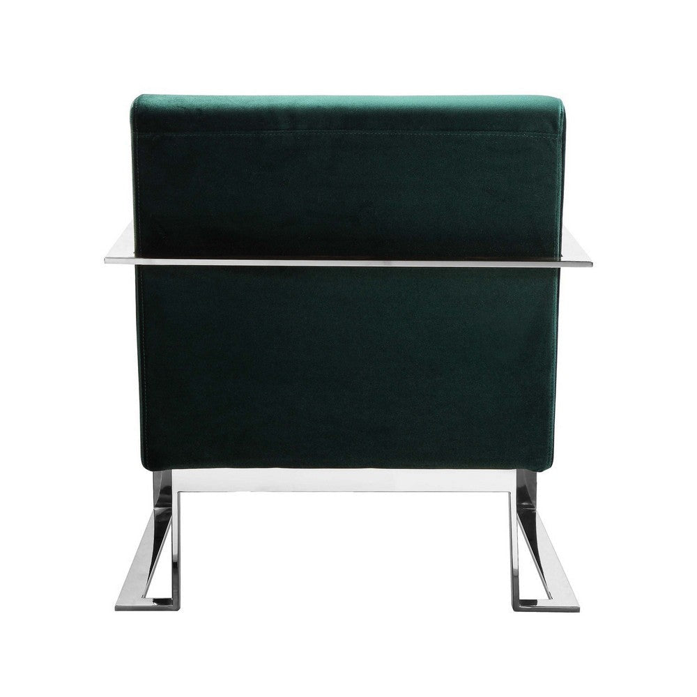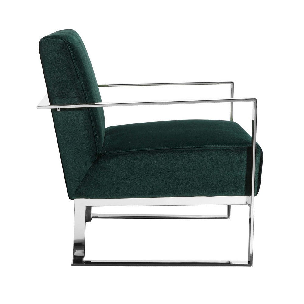 Boly 28 Inch Lounge Chair, Green Velvet, Foam Cushions, Chrome Steel Base By Casagear Home