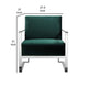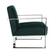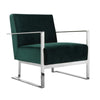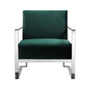Relax in modern luxury with this cozy accent lounge chair from our Boly collection. This chair features luxuriously soft green velvet upholstery, supportive armrests, and a sturdy chrome frame with square legs, offering exceptional comfort and a touch of modern flair. Check out our Boly collection for more options.