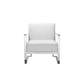 Relax in modern luxury with this lounge chair from our Boly collection. This chair features soft white faux leather upholstery, supportive armrests, and a sturdy chrome frame with square legs, offering exceptional comfort and a touch of modern flair. Check out our Boly collection for more options.
