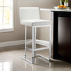 Boly 30 Inch Barstool Chair, White Faux Leather, Cushions, Chrome Steel By Casagear Home