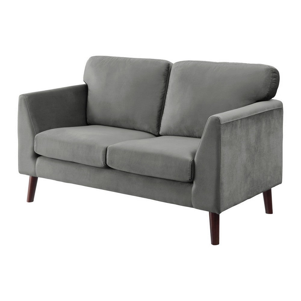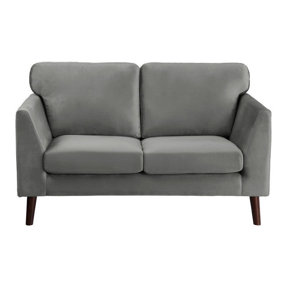 Cuddle up in comfort and style with this loveseat. Built with a solid wood frame and high-density foam padding, it offers exceptional comfort and durability. Additionally, it features plush gray velvet upholstery and supportive cushioning, perfect for movie nights or intimate conversations. Check out our Bard collection for more options.