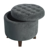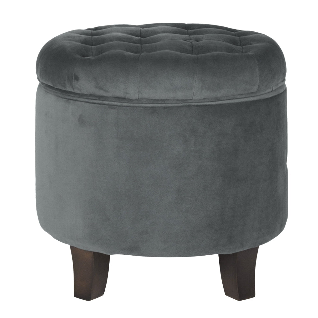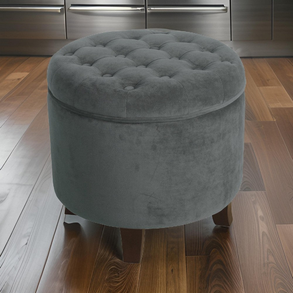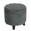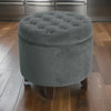 - Features button tufted top, easy lift top storage along with sturdy flared feet.