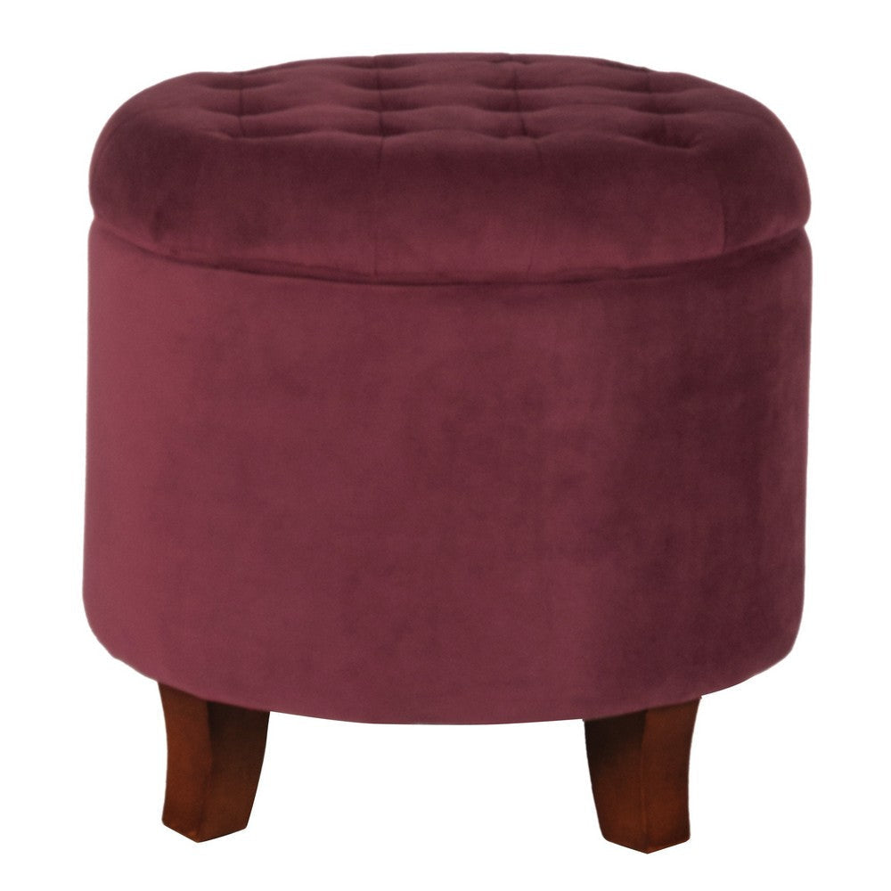 - Features button tufted top, easy lift top storage along with sturdy flared feet.