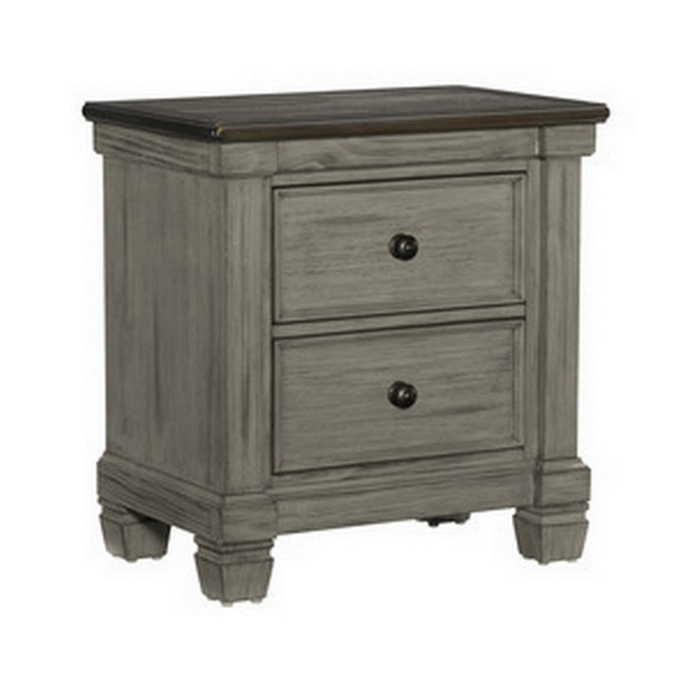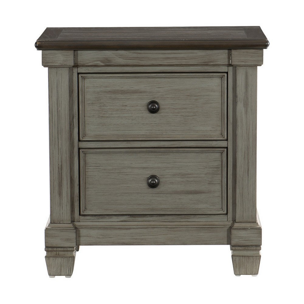 Cadie 29 Inch Nightstand, 2 Drawers, Coffee Brown, Antique Gray Wood By Casagear Home