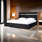 Caer Platform King Bed, Black Velvet Upholstery, Rose Gold Steel