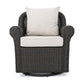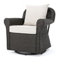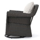 Calista Outdoor Swivel Rocker Chair, Beige Fabric, Dark Brown Wicker