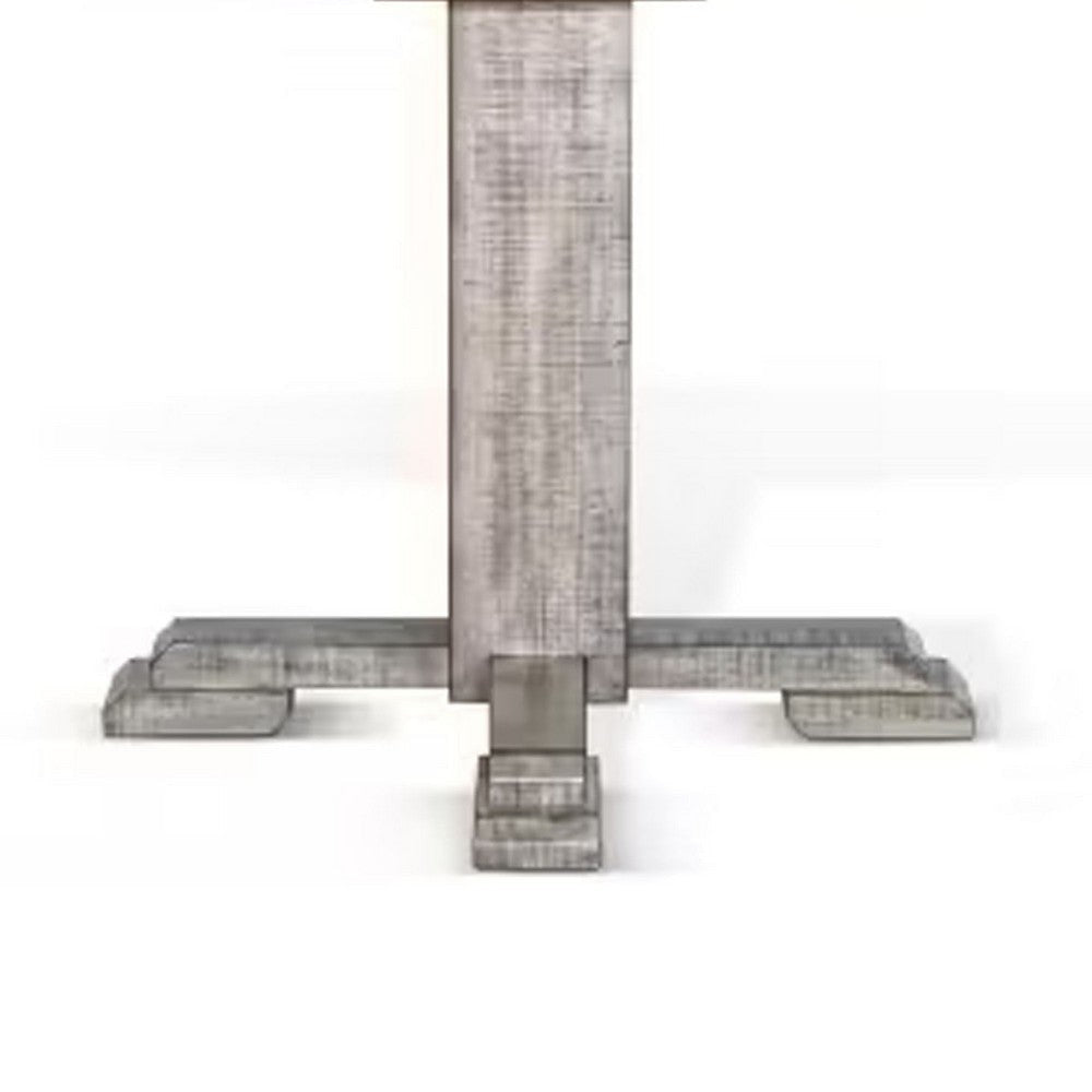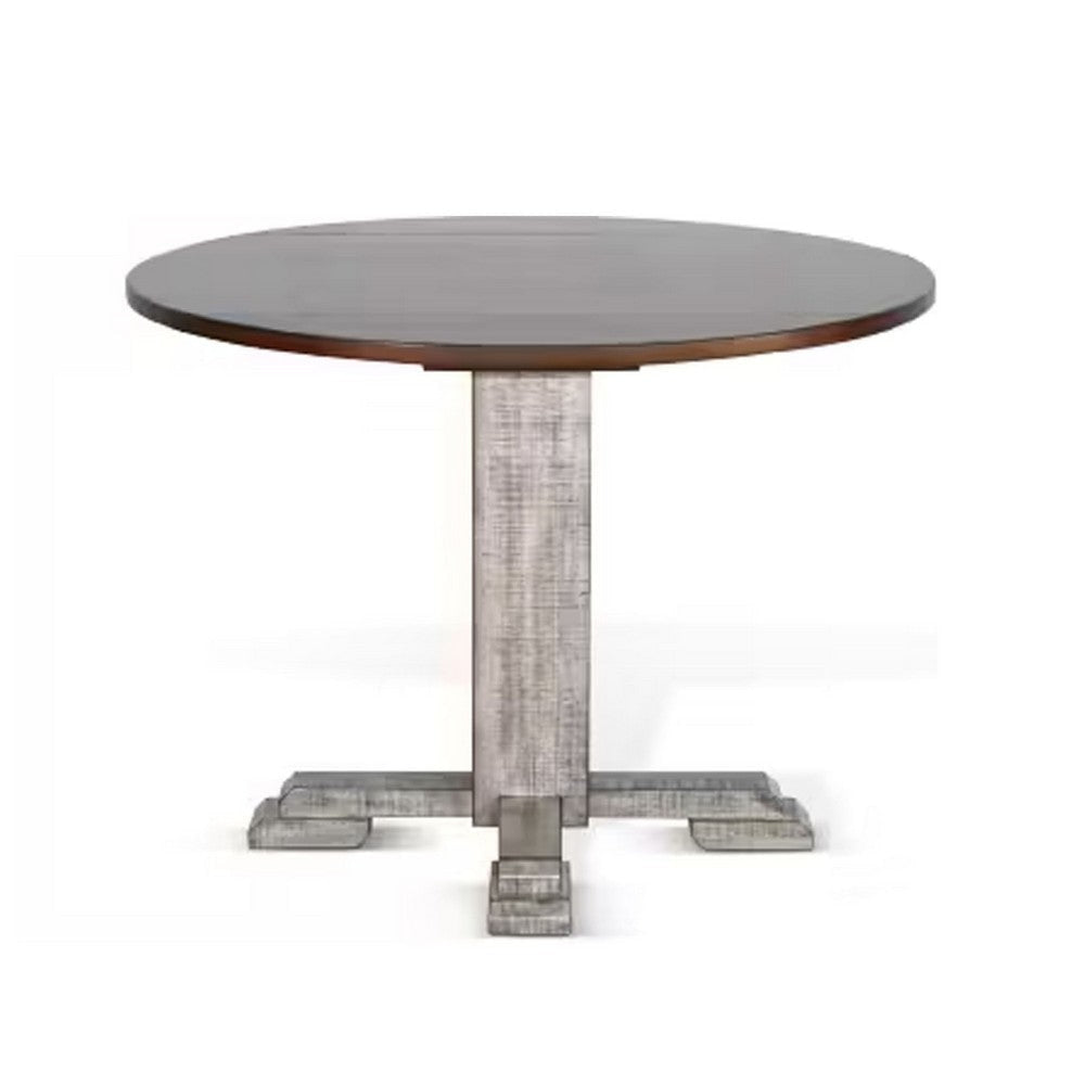 Create a cozy dining space with this dining table, crafted from rough sawn mahogany wood in a distressed gray and brown finish. The round drop-leaf tabletop includes two 11-inch leaves for flexible sizing, comfortably seating up to four. A sturdy pedestal base ensures stability, making it a perfect fit for farmhouse-inspired interiors. Explore the Camie collection by Casagear Home.