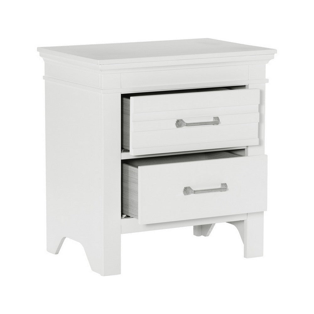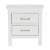 Candy 25 Inch Nightstand, 2 Drawers, Nickel Bar Handles, White Solid Wood By Casagear Home