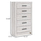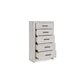 Description:The Cany tall dresser chest in vintage whitewash combines countryside charm with modern functionality. Featuring five smooth-gliding drawers for ample storage, it's crafted from durable MDF, engineered wood, and plywood with a decorative laminate finish. Black bar handles add a sleek touch, while framed panels and pilasters enhance its classic appeal. Explore the complete Cany collection for more.