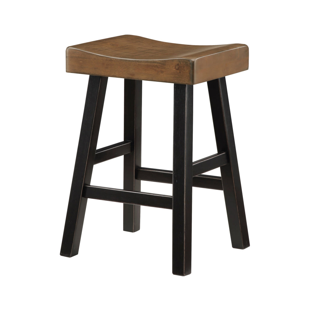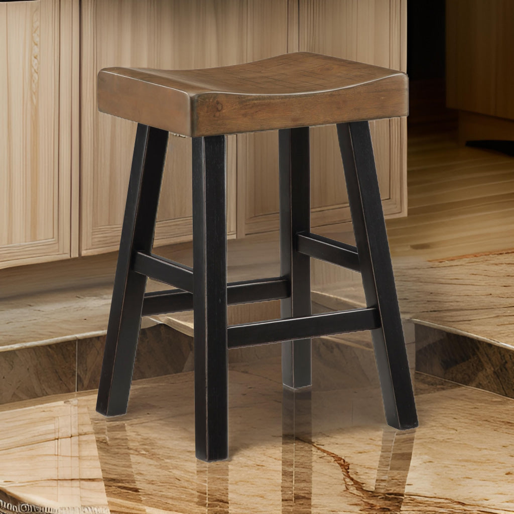 This set of two counter height saddle style stools blends clean lines and a timeless design for a look that complements any decor. Made from solid rubberwood, its sturdy black frame and sleek brown rectangular seat radiate modern minimalism. Enjoy the comfort of the generous footrest while enjoying meals or conversation at your counter height table. Check out our Casy collection for more color options.