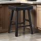 This set of two counter height saddle style stools blends clean lines and a timeless design for a look that complements any decor. Made from solid rubberwood, its sturdy black frame and sleek black rectangular seat radiate modern minimalism. Enjoy the comfort of the generous footrest while enjoying meals or conversation at your counter height table. Check out our Casy collection for more color options.