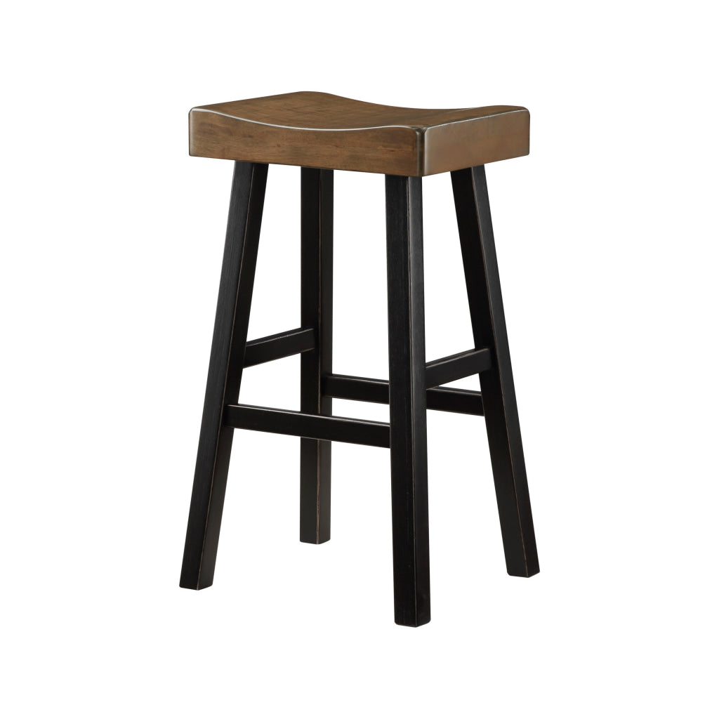 Casy 30 Inch Bar Height Stool, Brown Saddle Seat, Black Rubberwood, Set of 2 By Casagear Home