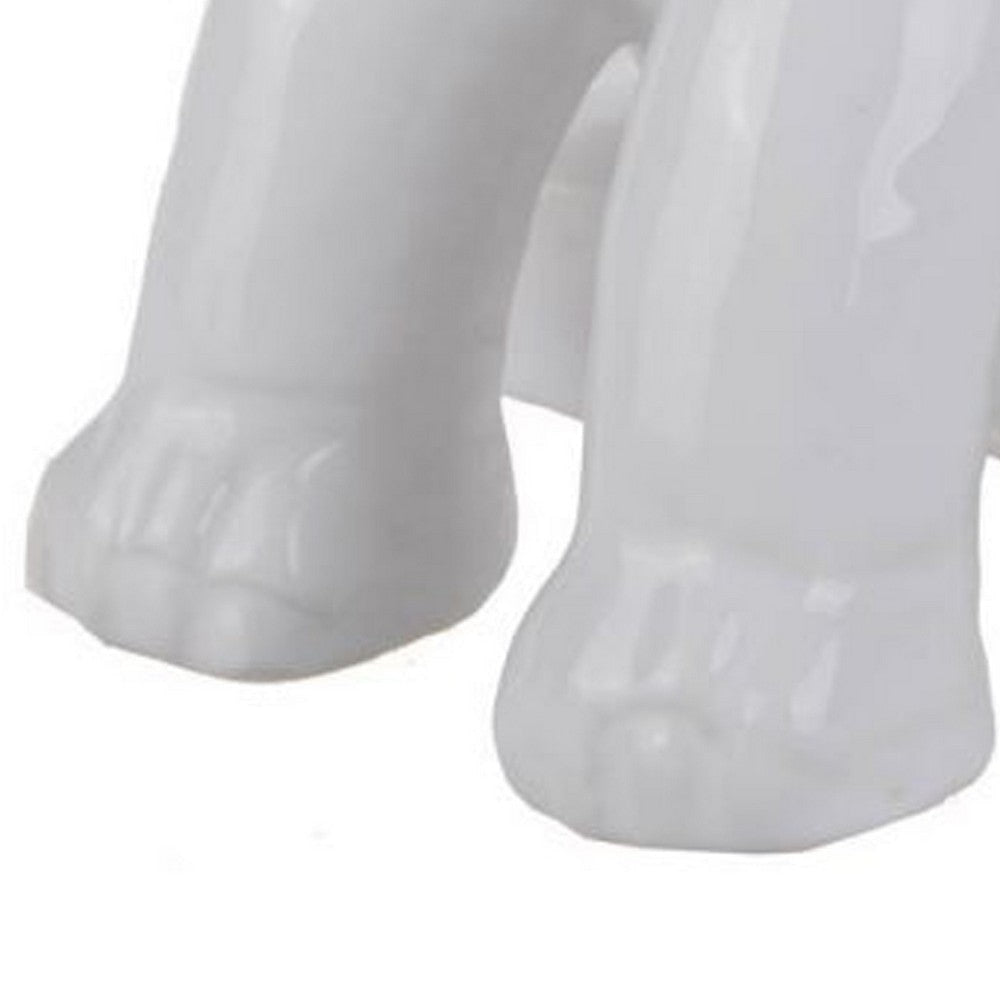 Amplify the beauty of your existing home decor with the inclusion of this sophisticated figurine. Crafted generously from ceramic in a white finish, it showcases a sitting baby elephant with raise trunk. Being ideal for home decor, it serves the best of its purpose.