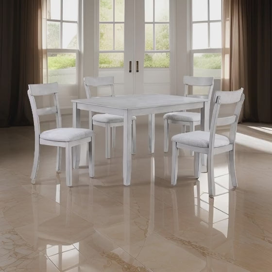 - Set includes four side dining chairs and one dining table