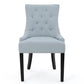 Chen Dining Chair Set of 2, Espresso Wood, Light Blue Button Tufted