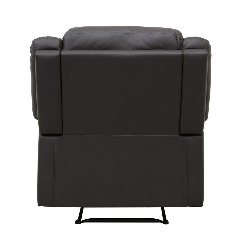 Chris 38 Inch Manual Recliner Chair, Solid Wood, Black Faux Leather By Casagear Home