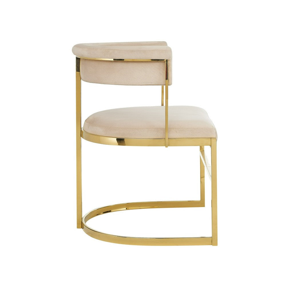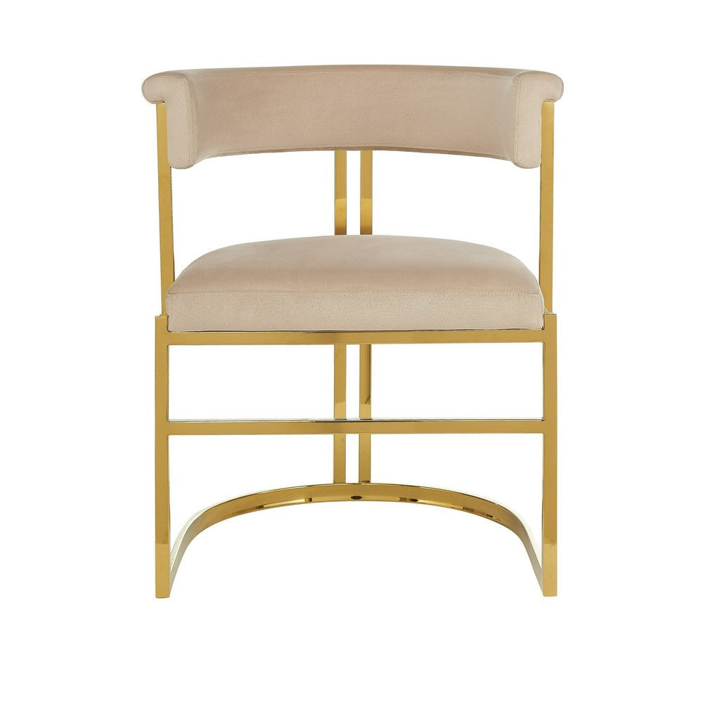 Cid Lisa 22 Inch Dining Chair, Beige Velvet, Curved Back, Steel Frame, Gold By Casagear Home