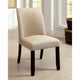 Description:Stylish And Comfortable, These Side Chairs Are Fully Upholstered With Padded Ivory Linen-Like Fabric. Slat Back Chair Padded Fabric Seat.