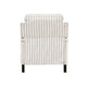 • Beige and gray textured polyester fabric upholstery with bold pinstripe design