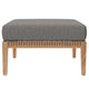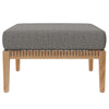 Bask in warm weather as you lounge on the Clearwater Outdoor Patio Furniture Collection. Bringing contemporary aesthetics to a backyard, porch, patio, deck, or poolside, this outdoor ottoman features woven rope webbing under the foam padded cushion that grants breezy, coastal charm. Rest and relax amidst comfortable cushions with removable all-weather covers for easy cleaning. The base of this patio ottoman is crafted with grade A premium teak wood that boasts a beautiful, rich wood grain and is naturally weather-resistant. Includes non-marking foot glides to protect flooring. Weight Capacity: 498 lbs. Set Includes: One - Clearwater Outdoor Patio Ottoman