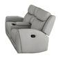 Cobe Manual Recliner Loveseat, 41 Inch, Center Console, Grain Gray Leather By Casagear Home