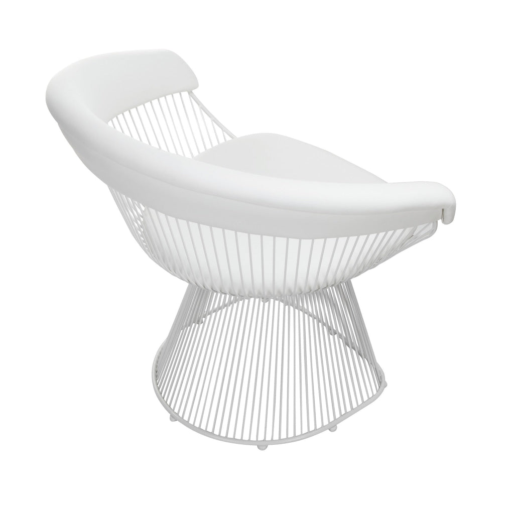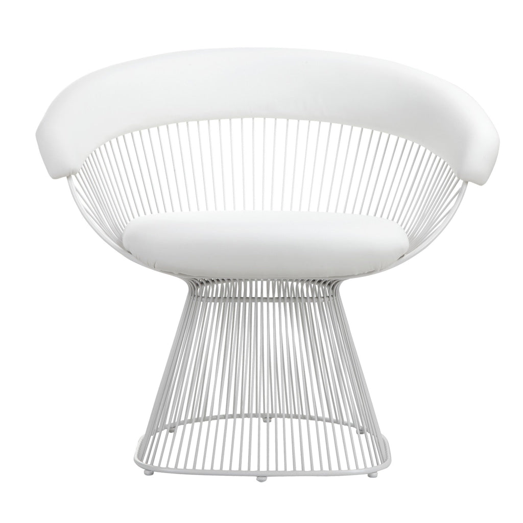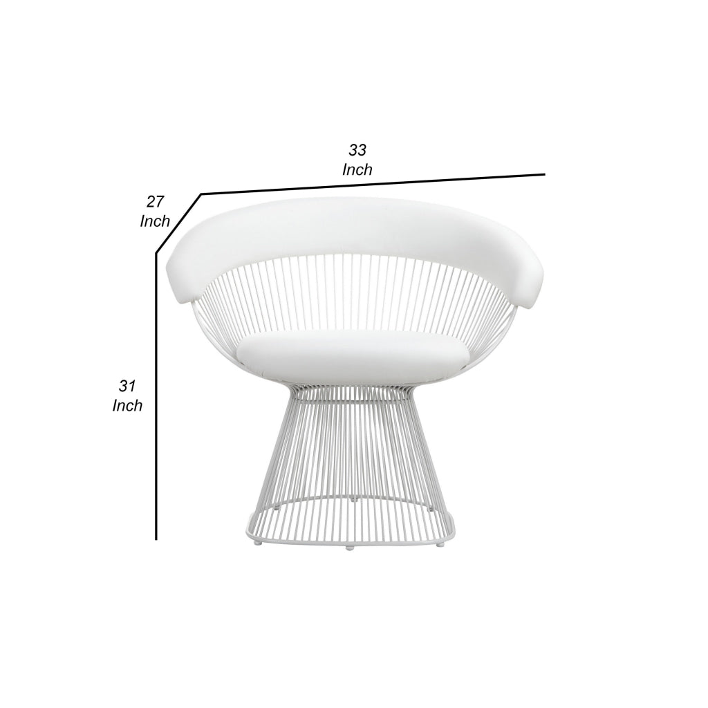 Coll 33 Inch Accent Chair, Slatted Metal Curved Back, White Faux Leather By Casagear Home