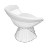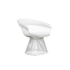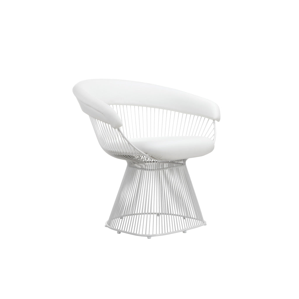 Our Coll accent chair exudes modern elegance with its sleek design and attention to detail. Crafted from durable metal and finished in a pristine white, it adds a touch of sophistication to any space. The white vegan faux leather upholstery enhances its aesthetic appeal and offers a cruelty-free alternative. The slatted frame provides style and comfort. Check out our Coll collection for more.