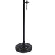 • Drum shade rests on a tubular frame conjoined with pedestal base