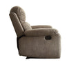 Experience a soothing time like never before with this recliner. Sink into the warmth and comfort of plush cushions with your favorite beverages and movie in the background. This contemporary style recliner is upholstered in microfiber, bears a metal framework and is finished in a gray color. This recliner incorporates a motion reclining mechanism and features a pillow top for the utmost comfort. Other items in the image are sold separately.