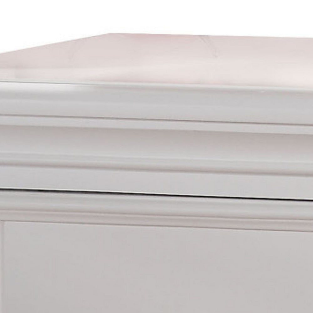 Reduce the amount of clutter beside your bed with this exquisite white nightstand. It features two drawers with ample storage space. Crafted from wood, this beautiful night stand exhibits a contemporary touch. It features metal drawer knobs and wooden block legs. Other items in the image are sold separately.