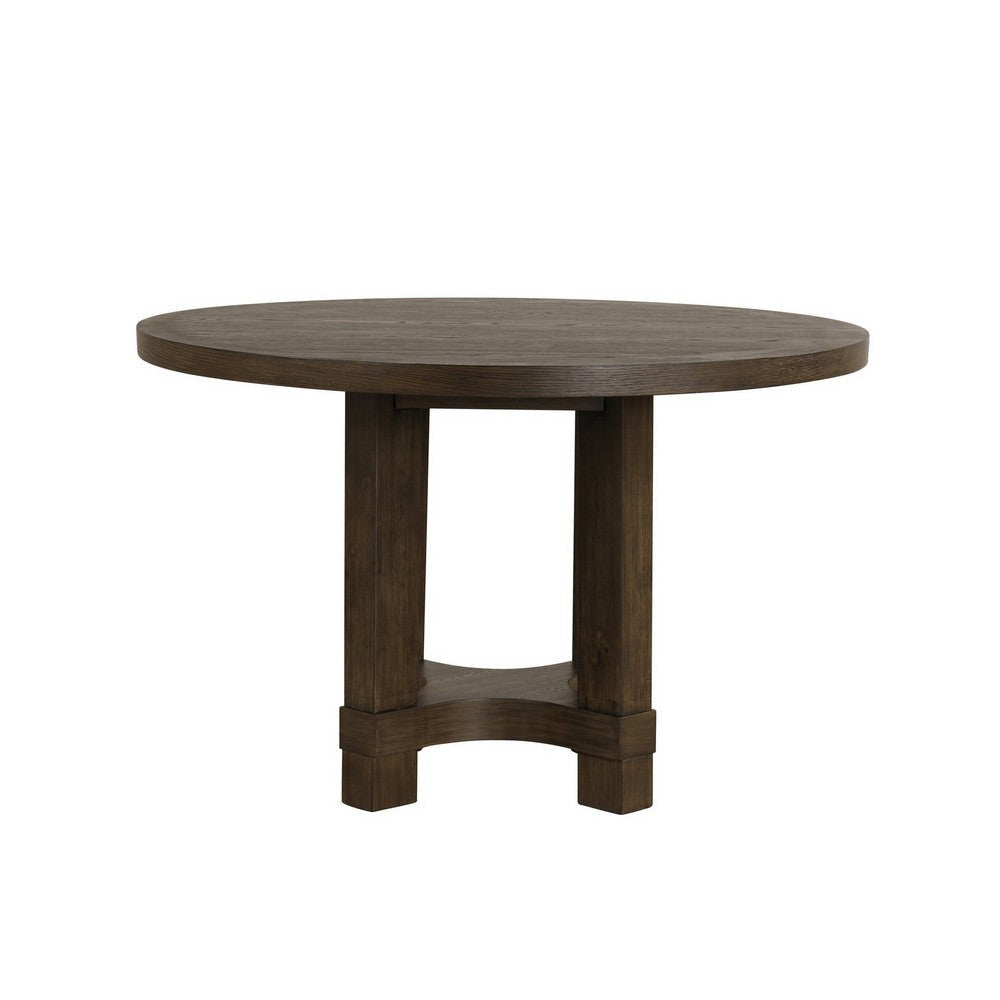 Cora 48 Inch Dining Table, Round Rubberwood Frame, Brown Ash Veneer By Casagear Home