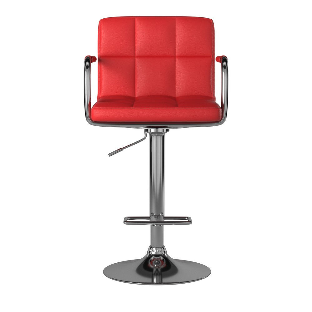 Barstool | Swivel | Square Stitched Faux Leather | Red Silver