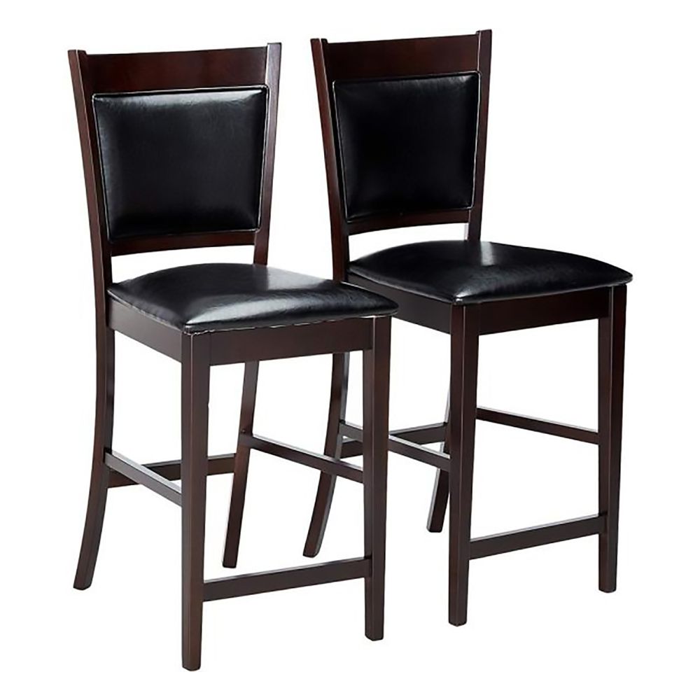 Counter Chair Set of 2 | Vinyl Padded Seat Back | Espresso Brown
