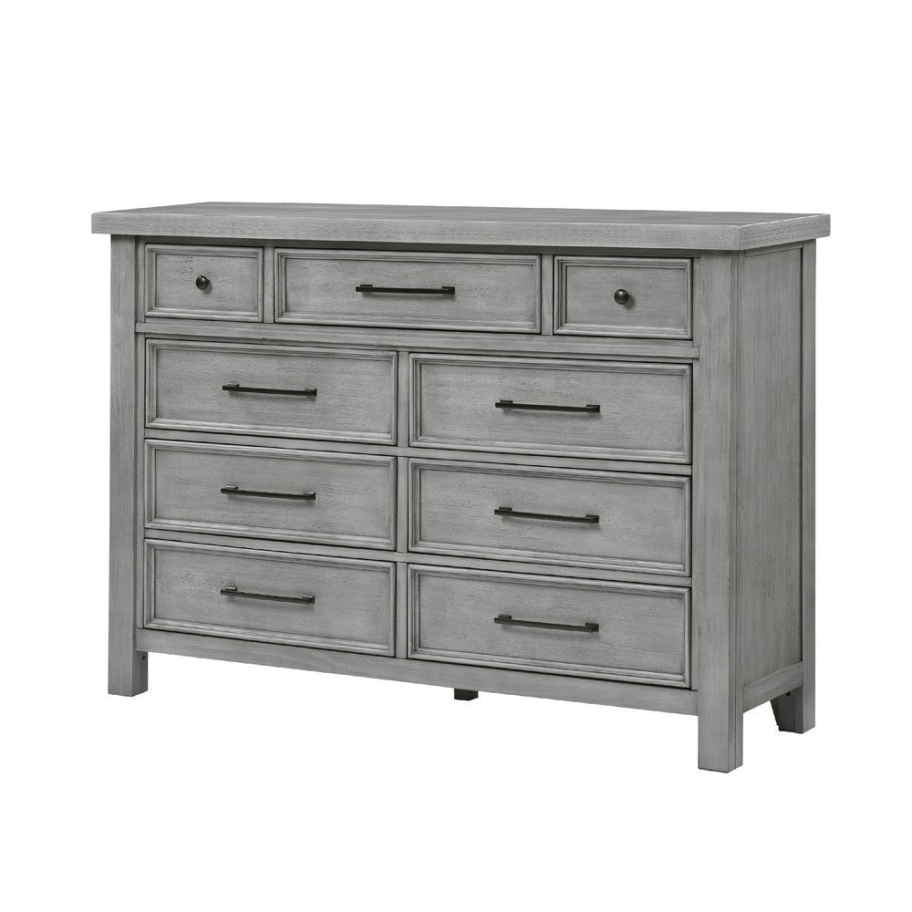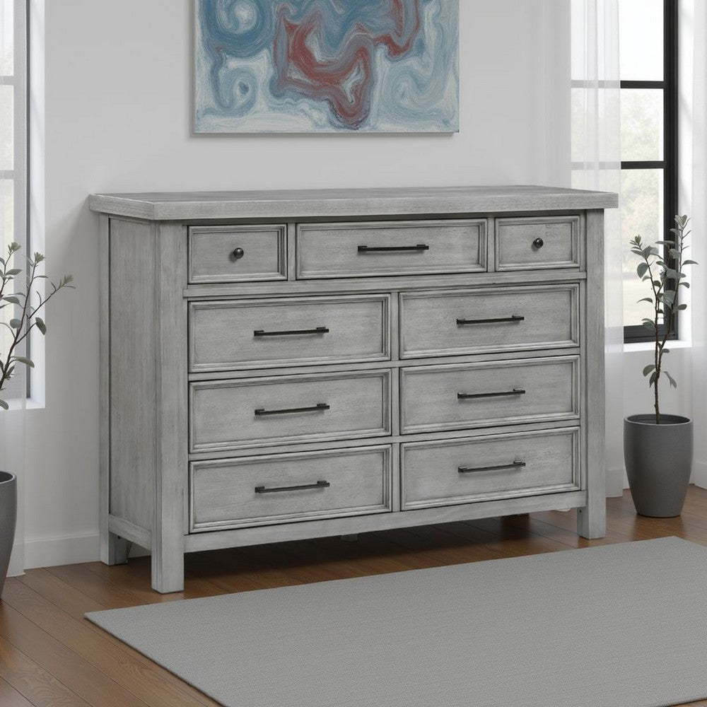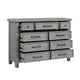 Introduce storage with a stylish touch with this wide dresser. Made from mango veneer, wood, and engineered wood, it features an antique gray finish that adds timeless elegance to your space. The dark bronze tone knobs and handles provide a perfect contrast, while the ample storage space includes nine dovetail drawers. Explore our Daisy collection by Casagear Home.
