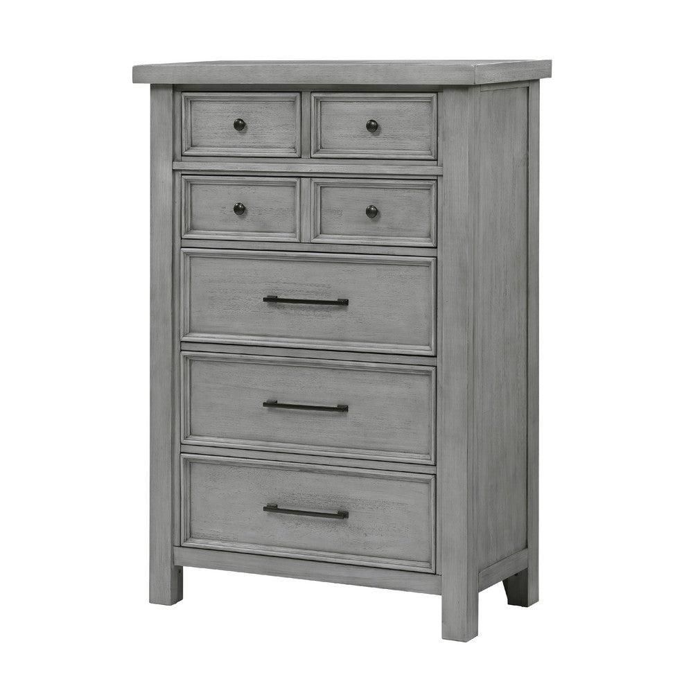 Introduce storage with a stylish touch with this tall dresser chest. Made from mango veneer, wood, and engineered wood, it features an antique gray finish that adds timeless elegance to your space. The dark bronze tone knobs and handles provide a perfect contrast, while the ample storage space includes seven dovetail drawers. Explore our Daisy collection by Casagear Home.